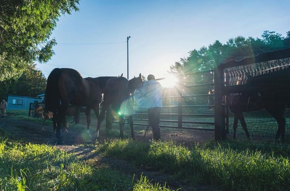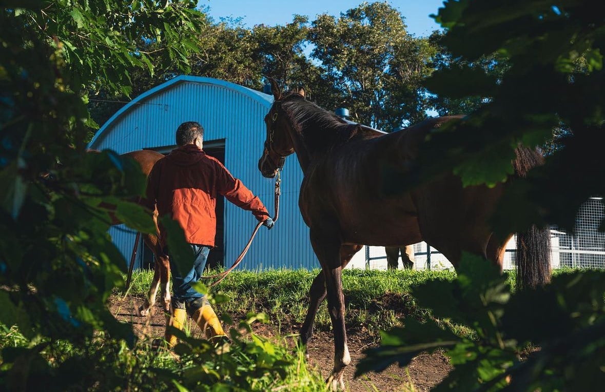 気候に合わせた時間で出し入れしています。また、ベテランさんは1人で2頭もひいたりしています